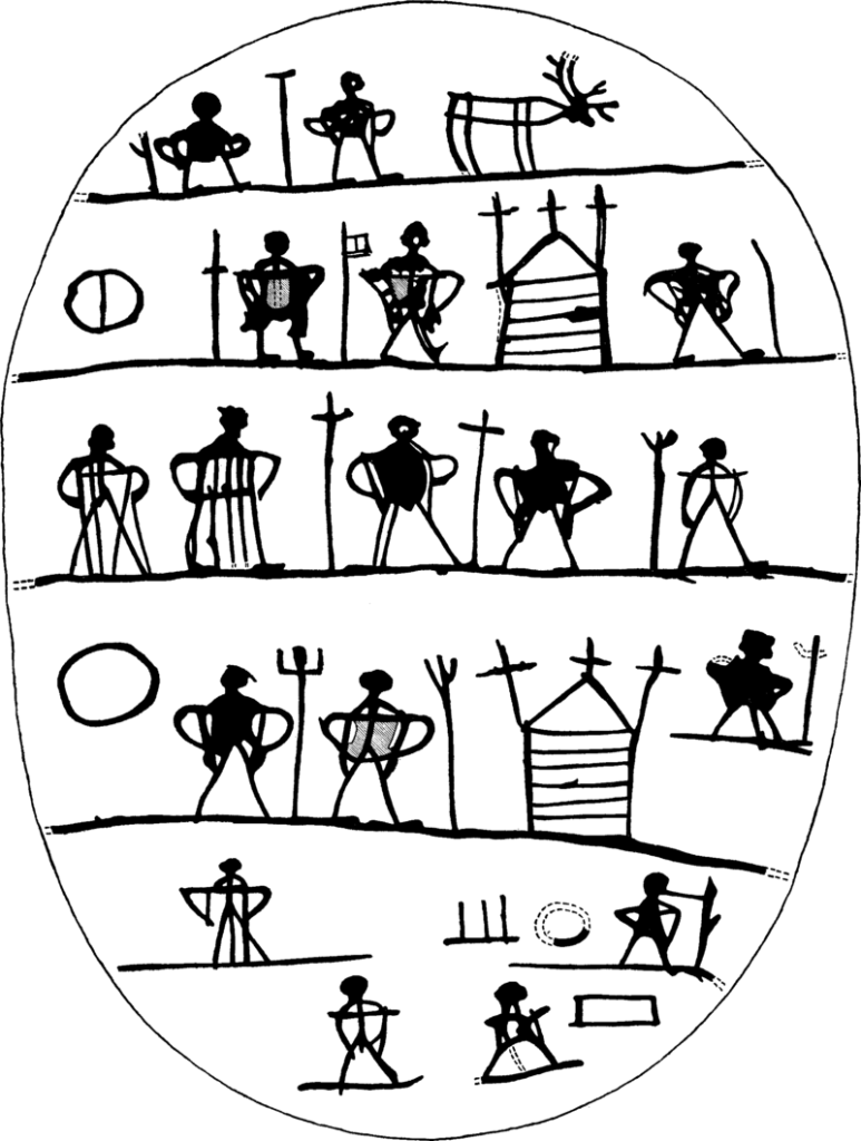En sus rituales, los chamanes sami (llamados noajdde o noaiti) utilizan el canto, acompañado por la percusión del tambor. Gracias a la monótona cadencia que genera, entran en trance para abandonar su cuerpo y acceder al mundo de los espíritus. Para acceder a él, utilizaban a modo de mapa del otro lado los dibujos del tambor, que se convierten en una suerte de guía. Cuando los monjes cristianos vieron como usaban el tambor, rápidamente los confiscaron y los quemaron en grandes hogueras.