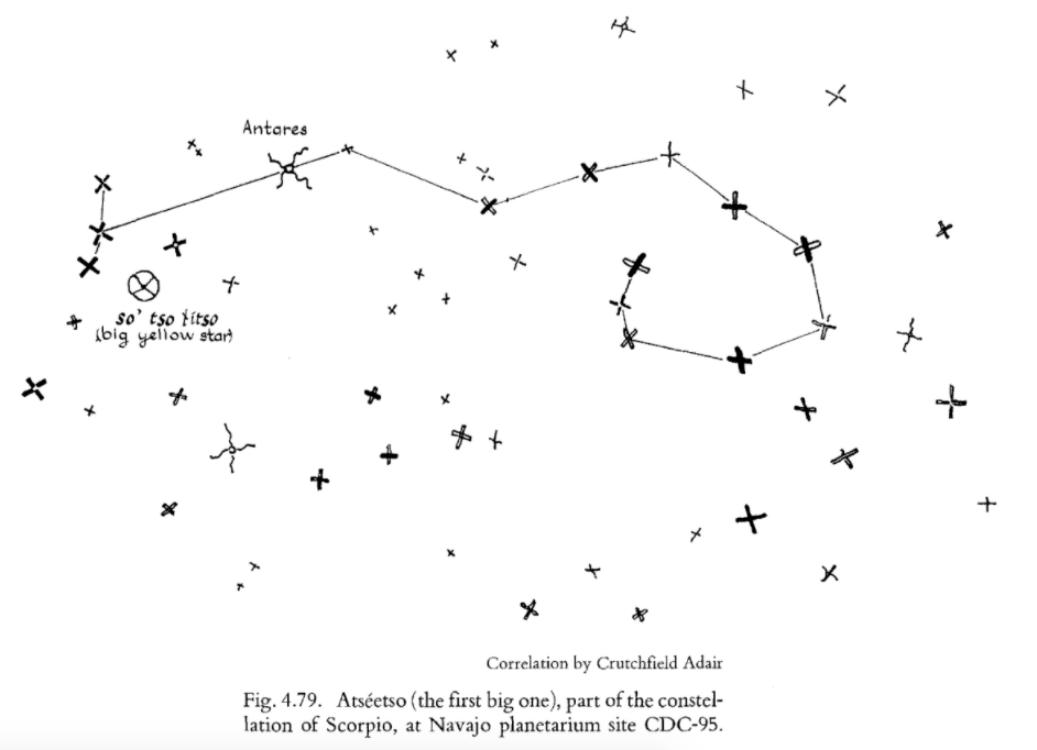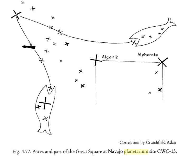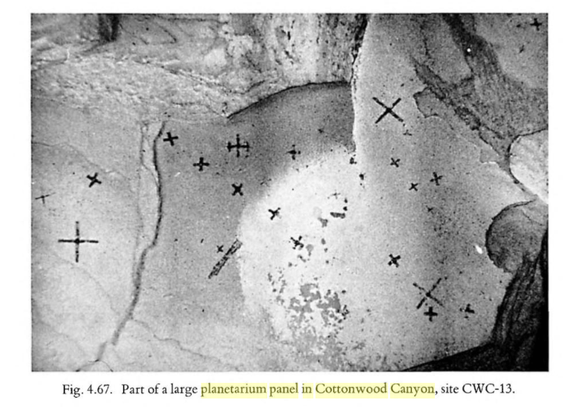 Navajo pictograph panels of crosses on cave ceilings in Arizona and New Mexico are believed to represent stars. It has been thought that the «stars» in these «planetaria» (1) were brush- or wooden-stamp painted, (2) were reached by ladder, scaffold, or poles, (3) are eighteenth century, and (4) were made for ritual purposes. Field examination and informant testimony reveal that (1) many or most crosses were applied with stamps made from yucca leaves or other materials, (2) the bow and arrow was one way of gaining access to high ceilings, (3) some crosses were made as late as 1920, and (4) in some cases, mere amusement was the sole motive for application.
