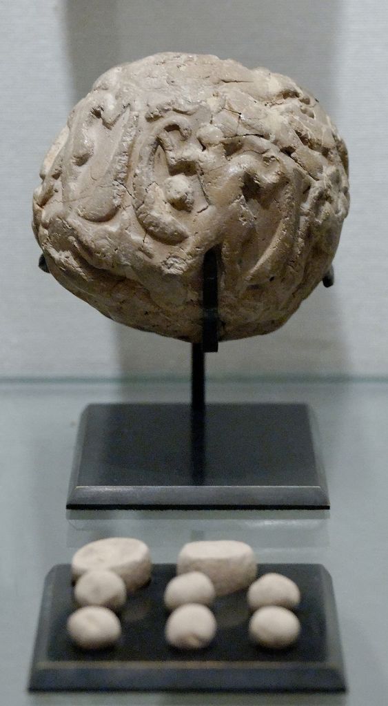 Archaeologist Denise Schmandt-Besserat determined the link between previously uncategorized clay «tokens», the oldest of which have been found in the Zagros region of Iran, and the first known writing, Mesopotamian cuneiform.[33] In approximately 8000 BC, the Mesopotamians began using clay tokens to count their agricultural and manufactured goods. Later they began placing these tokens inside large, hollow clay containers (bulla, or globular envelopes) which were then sealed. The quantity of tokens in each container came to be expressed by impressing, on the container’s surface, one picture for each instance of the token inside. They next dispensed with the tokens, relying solely on symbols for the tokens, drawn on clay surfaces. To avoid making a picture for each instance of the same object (for example: 100 pictures of a hat to represent 100 hats), they ‘counted’ the objects by using various small marks. In this way the Sumerians added «a system for enumerating objects to their incipient system of symbols».