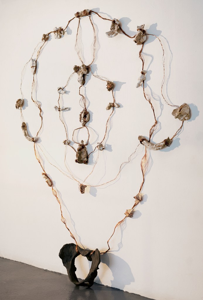 No todo está conectado a todo pero todo está conectado a algo. (Donna Haraway), Coco Moya, instalación de cerámica cocida y cobre, 2021.