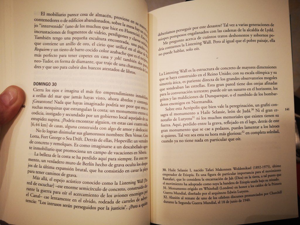 Me interesa la noción de espejo-acústico, o espejo-sonoro, de los Acoustic Mirrors o Acoustic walls, unas estructuras de hormigón que se usaron en la segunda guerra mundial para escuchar los bombarderos a distancia en inglaterra. que nos ofrece una visión de lo sonoro como un reflejo, como un diálogo. También estas estreucturas arquitectónicas casi-montañosas, comparables a los monumenots megalíticos.